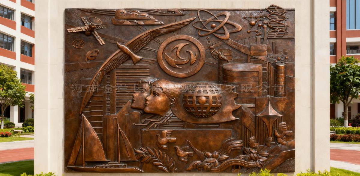 面对校园文化建设这一特殊命题,金兰设计团队深入理解教育空间的公共属性与育人功能。项目总设计师介绍:"我们以'爱'为核心意象构建叙事体系,通过不同时空维度的艺术表达,将具象教育场景升华为精神图腾。"三幅雕塑墙既独立成章又互文成趣,运用当代公共艺术手法解构传统教育题材,实现了视觉符号的现代转译。